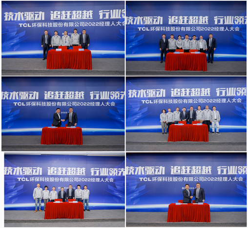 随后,大会进入签署环节。黄伟与TCL环保科技下属各企业管理团队分别签署2022年经营绩效责任书、环境安全管理责任书。责任呼唤担当,使命引领未来。各企业签下了责任书就是立下了军令状,必当勇担责任、使命必达!