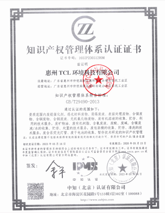 知识产权管理体系认证证书
